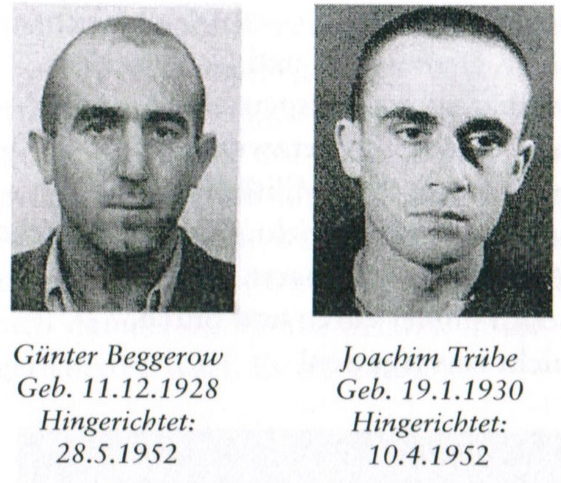 Günter Beggerow, der Student der FU, war 23 Jahre alt, als er am 28. Mai1952 erschossen wurde.ii Ihm wurde Militärspionage vorgeworfen. Zeitweise hatte er mit seinen Freunden Herbert Hermann und Werner Bork in Berlin-Wannsee gewohnt. Herbert Hermann und Günter Beggerow hatten eine Flugblattrakete über Bad Schandau abgeworfen.iii