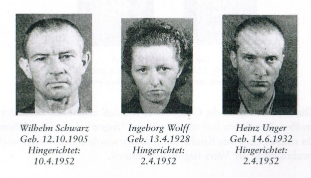 Joachim Trübe wurde zusammen mit den Geschwistern Kuhfuß am 10. April 1952 erschossen.iv Zu diesem Zeitpunkt war er 22 Jahre alt.