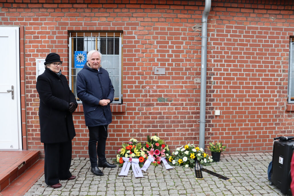 Vor der Polizeistation der Gemeinde Parey (Sachsen-Anhalt) in der Ernst-Thälmann-Straße fand am 23. Januar 2023 die Zeremonie der Tafelanbringung für Horst Avemann statt.